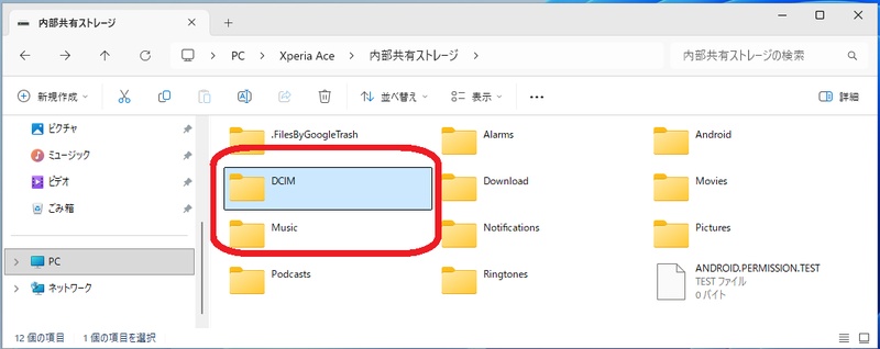 パソコンのエクスプローラーで接続したスマホを開く