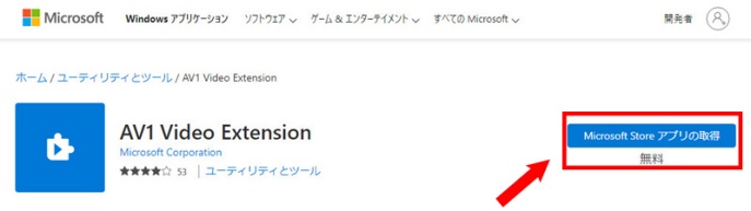 「AV1 Video Extension」が見つかったら、「アプリの取得」をクリックする
