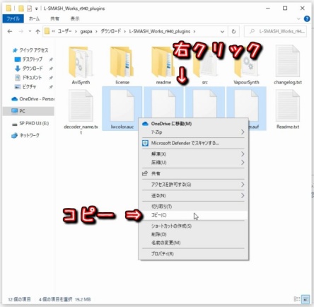 4つのファイルを「AviUtl」のフォルダの中に移動