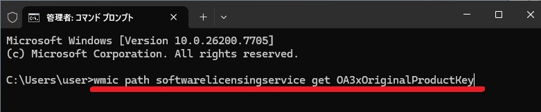 物理的なキーが見つからない場合は、コマンドプロンプトやPowerShellで確認します。
