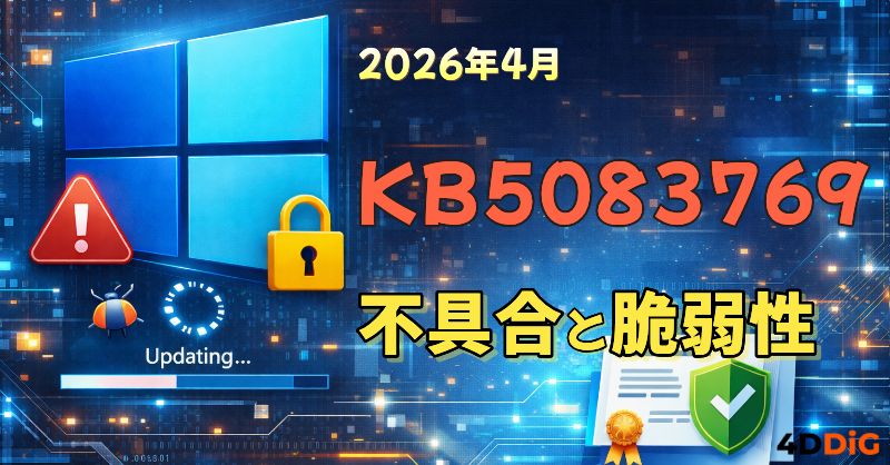 Microsoftは2026年4月15日(日本時間)、Windows 11バージョン25H2およびバージョン24H2を対象とした月例セキュリティ更新プログラムKB5083769を正式にリリースしました。これは2026年4月のPatch Tuesdayとして配信される必須の累積更新プログラムであり、セキュリティ脆弱性の修正に加え、セキュアブート証明書の強化やリモートデスクトップのフィッシング対策、「このPCをリセット」の不具合修正など、多くの重要な改善が含まれています。本記事では、KB5083769の基本情報から修正された脆弱性、ユーザーが報告しているKB5083769の不具合と回避策、入手方法、さらに万が一データが消えてしまった場合の復元方法まで、詳しく解説します。