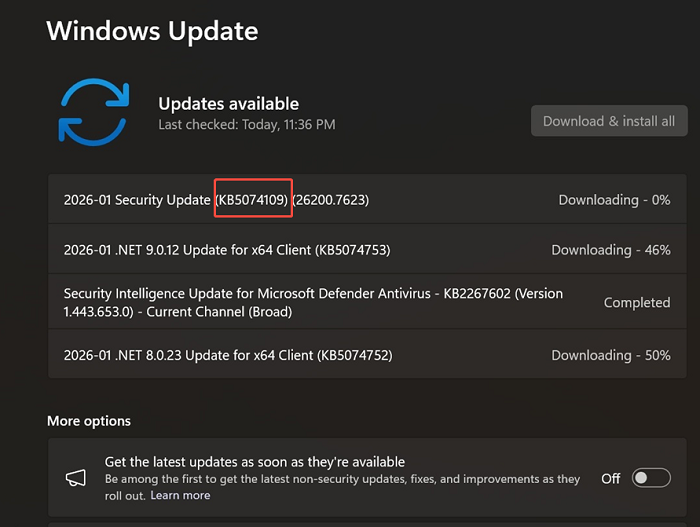 - 대상 OS:Windows11 버전 25H2 및 Windows11 버전 24H2 환경에서 KB5074109를 적용한 시스템에서 발생하고 있습니다.