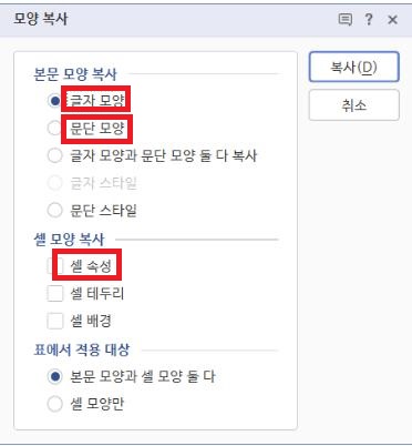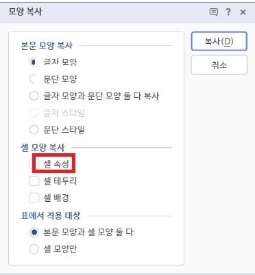 한글 표 셀 모양 복사하기