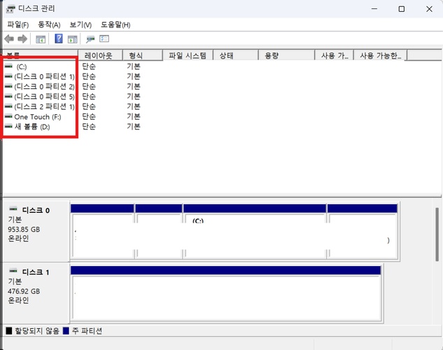 Window + x를 눌러 디스크 관리로 들어갑니다.