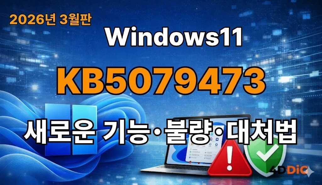 본 기사에서는 KB5079473의 기본 정보·신기능·개선점·보고된 문제점, 그리고 업데이트 후 데이터가 사라지거나 열리지 않는 경우의 대처법까지 2026년 3월 시점의 최신 정보를 바탕으로 자세히 정리하고 있습니다. "Windows 업데이트를 적용해야 할지 고민 중이다", "KB5079473 설치 오류가 발생했다"는 분들도 꼭 참고해 보시기 바랍니다.