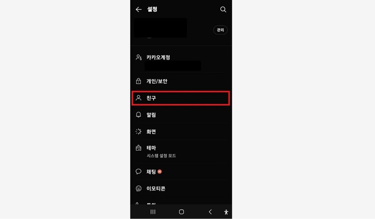 방법 1번 설정 창 친구관리 메뉴에서 확인 하기