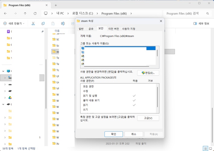 스팀 게임 폴더에 관리자 접근 권한이 부여되지 않았거나 사용자 계정 권한이 제한된 경우 발생합니다.