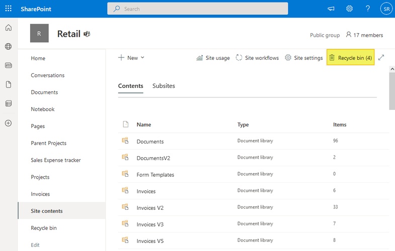 Q3: How do I find the Recycle Bin of a SharePoint site?