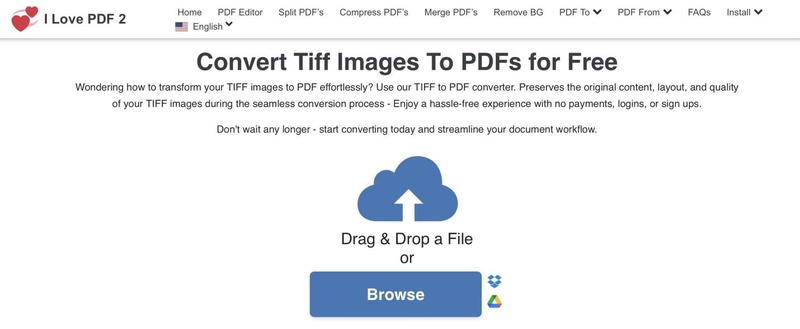 This method works well for small to medium files. It is a popular online TIFF to PDF converter for quick document sharing.