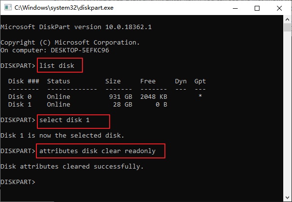 DiskPart is a powerful Windows command-line utility that can remove read-only attributes and format storage devices at a deeper level than standard tools. This method is effective when the write protection is caused by software-level restrictions. Learn how to format an SD card write-protected using CMD:
