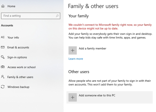 按下 Win + I 進入設定,選擇帳戶 > 家庭與其他使用者。