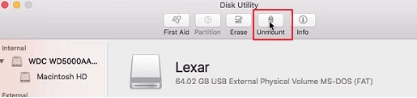 接著,再一次選擇你的 SD卡,然後點擊頂部的 “卸載”