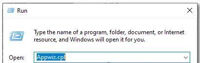 將以下文字 (Appwiz.cpl) 複製並貼上到提示中,然後按一下「確定」。