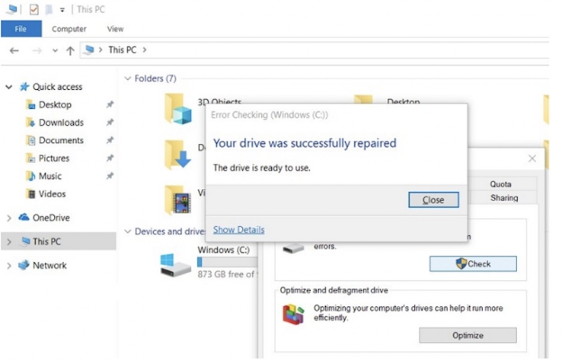 掃描完成後,如果檢查到磁碟錯誤,點選「修復磁碟機」來修復錯誤。完成後重新啟動電腦,查看問題是否已解決。