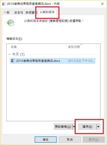 如果你開啟了Windows系統還原點功能,可以嘗試從以前的系統還原點中找回被覆蓋的Word檔案,然後就能讓你的Word復原檔案啦!