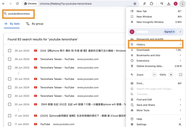 方法3.透過Google Chrome瀏覽器找回刪除的YouTube影片