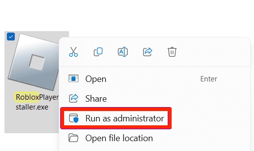 Fix 1: Run RobloxPlayer.exe File as Administrator